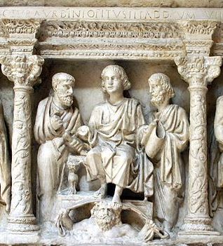 SARCÓFAGO de JULIO BASSO. Cristo dando la ley a Pedro y a Pablo